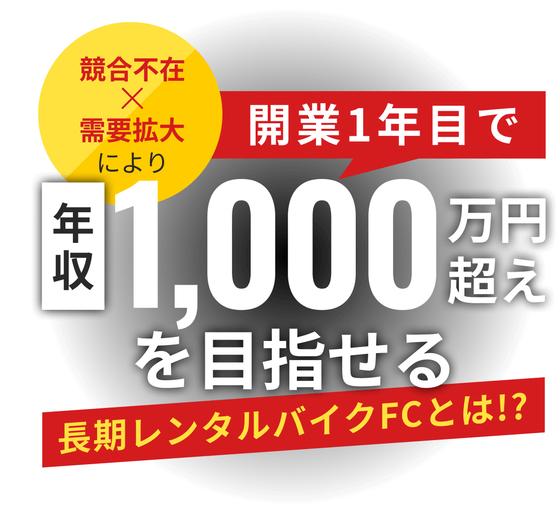 バイクの買取と販売に加え、バイクのレンタル事業も同時に行うレンタルバイクフランチャイズ。コロナ明けから、単身赴任者やフードデリバリー利用者が増えたことにより、バイクを「買いたい」ではなく「長期間借りたい」方が増加し右肩上がりに業績を伸ばしている大注目のサービス。ショットで売上が立つバイクの買取事業にストックで売上が立つレンタル事業を加えることで、安定して高収益を出せることが特徴のビジネス。